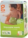 - gDiapers(ジー・ダイアパーズ)は、キュートな布製の「リトル・ジー・パンツ」(別売)と、オムツを固定する「ライナー」(別売)、そしてトイレに流しても溶けてしまう使い捨て部分「リフィール」の3つで構成されています。