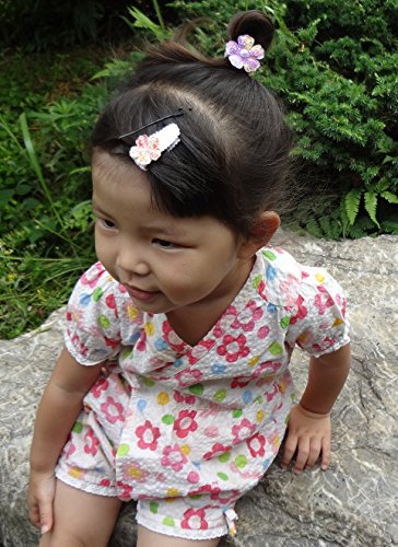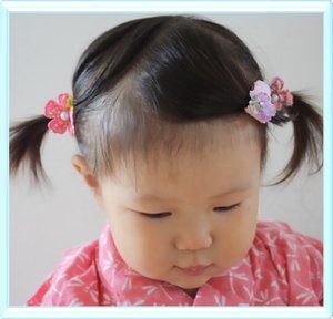 スウィートキス ベビー(新生児)用 和柄桜 パッチンどめセット(赤 サーモン) 浴衣 七五三 髪飾り 安心のマジックテープ素材