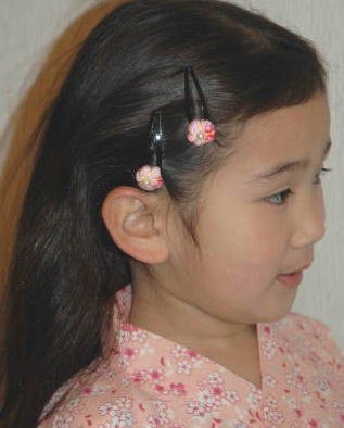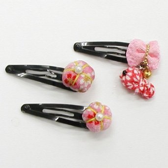 和柄ちりめん 金魚・梅型 パッチンどめ セット (ピンク) 浴衣 七五三 髪飾り