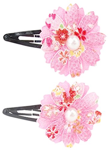 スウィートキス 和柄ちりめん ガーベラ パッチンどめ(ピンク) 2コセット 浴衣 かみかざり 髪飾り 着物 七五三 成人式 卒業式 髪飾り スリーピン キッズ (ピンク)