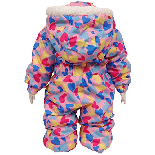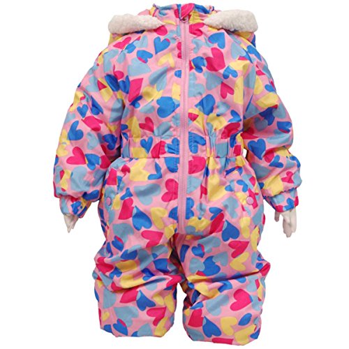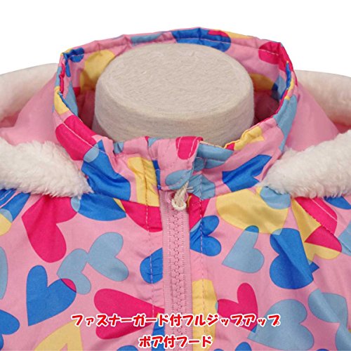 ガールズベビースキーウェア[Blue Mart(ブルーマート)]マルチカラーハート柄|中綿ジャンプスーツ|スノーコンビ|雪遊び|女の子|女児|子供用 80cm ピンク
