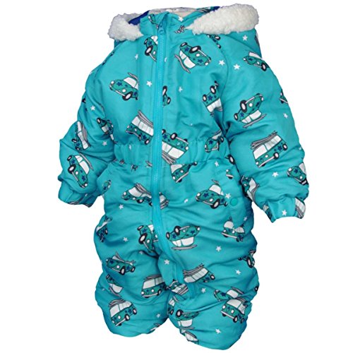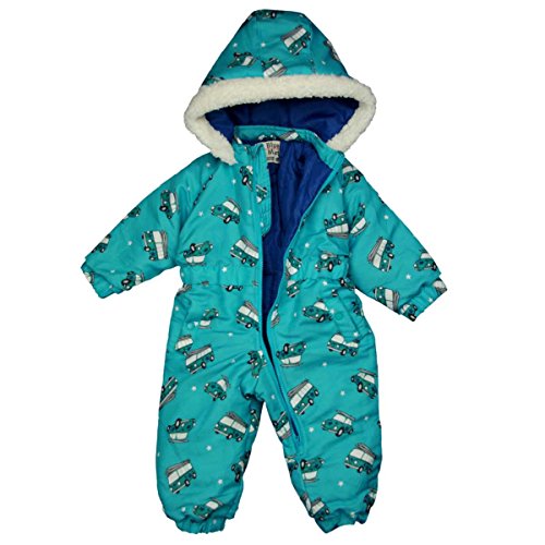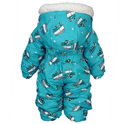 ボーイズ|ベビー|スキーウェア[Blue Mart]車|くるま柄|中綿入りジャンプスーツ|防寒|つなぎ|スノーコンビ|雪遊び|子供用|男の子 80cm ターコイズ