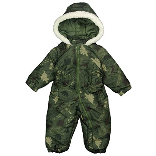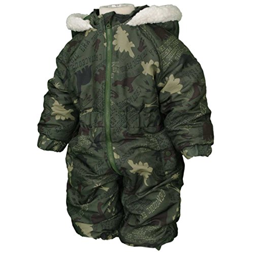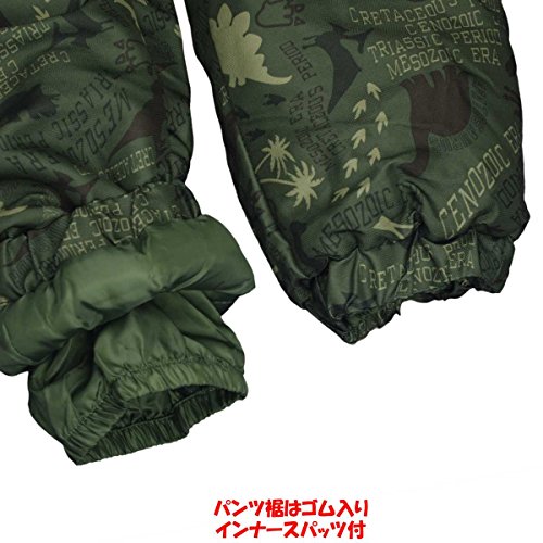 ボーイズ|ベビー|スキーウェア[Blue Mart]恐竜柄|中綿入りジャンプスーツ|防寒|つなぎ|スノーコンビ|雪遊び|子供用|男の子 95cm カーキ