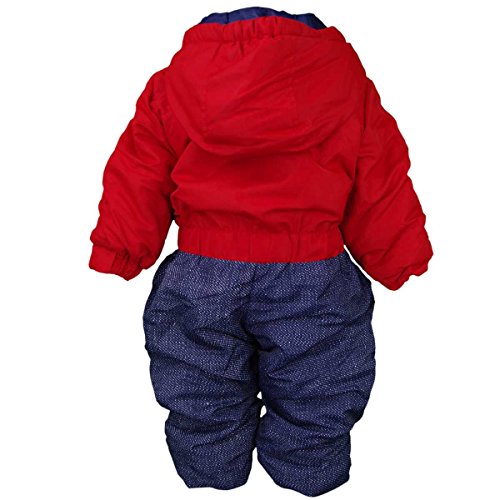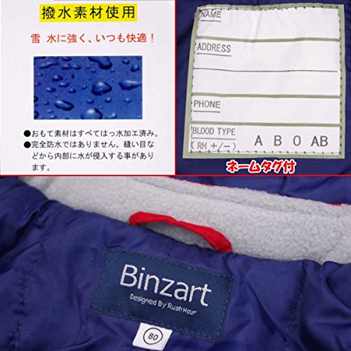 ボーイズ|ベビー|スキーウェア[BINZART]男の子ベビー|デニム柄|中綿入りジャンプスーツ|防寒|つなぎ|スノーコンビ|雪遊び|子供用 95cm レッド-デニム
