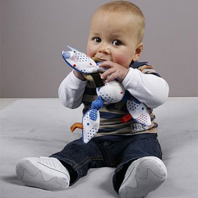 赤ちゃんの触る動作と感覚を刺激してくれる、オランダ生まれのSnoozebaby(スヌーズベビー社)のベビーグッズ。 布の優しい肌触りと木のあたたかい感触が一緒に楽しめるユニークな形のラトルです。 ファンタジーラトルは、布部分の3つの角や、木製の輪っかなど、どこからでも掴める形になっています。 布の部分をにぎにぎしたり、木の輪っかを歯固めの代わりにカミカミしたり、ラベル(タグ)で触って遊んだり。。。 ファンタジーラトルの布と木の異なる触感、そして形の違う大小のラベルは、赤ちゃんの感覚を刺激します。 【■Snoozebaby(スヌーズベビー社)】 たくさんの、形の違う大小のラベル(タグ)は、リラックスと安心だけでなく、赤ちゃんの触る動作と感覚を刺激します。 ベロア生地・ジャージーコットンなど、赤ちゃんに優しい素材だけを使用しているので、赤ちゃんの肌にも安心です。 Snoozebabyのベビーグッズは、出産のお祝いにもお勧めです。