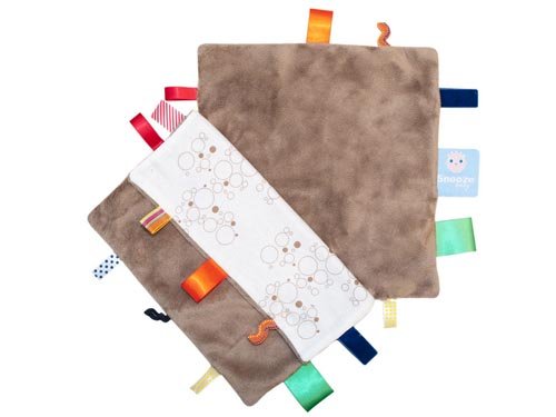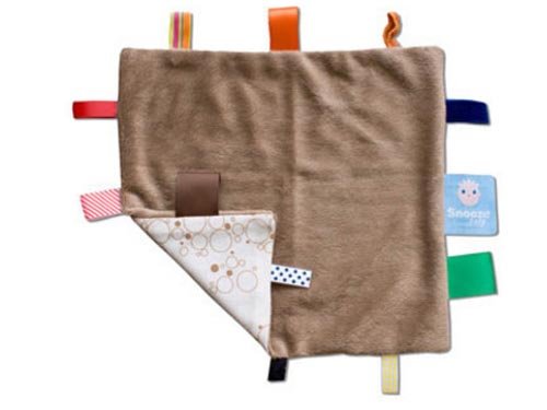 赤ちゃんの触る動作と感覚を刺激してくれる、オランダ生まれのSnoozebaby(スヌーズベビー社)のベビーグッズ。 いっぱい付いたラベル(タグ)や柔らかい質感で赤ちゃんにニギニギさせて遊ばせるコンフォートクロス"Sweet Dreaming"です。 思わずほお擦りしたくなるような優しい肌触りは、ニギニギ遊んでいる内に赤ちゃんを安心させます。パパやママが目の前で触ってあげてもいいですね。 自分やパパ、ママの匂いもついて、おねんねの時にニギニギしながら安心して眠れます。 いろんな形・色のタグがついて、表面がパイル生地(ポリエステル100%)で裏面がソフトな手触りのニット生地(綿100%)です。 お出かけにも便利ですね。。。 【■Snoozebaby(スヌーズベビー社)】 たくさんの、形の違う大小のラベル(タグ)は、リラックスと安心だけでなく、赤ちゃんの触る動作と感覚を刺激します。 ベロア生地・ジャージーコットンなど、赤ちゃんに優しい素材だけを使用しているので、赤ちゃんの肌にも安心です。 Snoozebabyのベビーグッズは、出産のお祝いにもお勧めです。