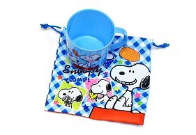 スヌーピー SNOOPY コップ&巾着セット (青・ブルー)