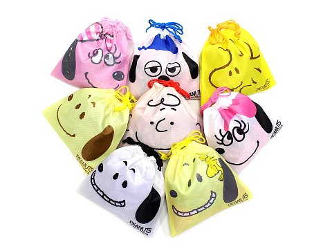 - 両面柄入りのスヌーピーの巾着袋4枚セットです。