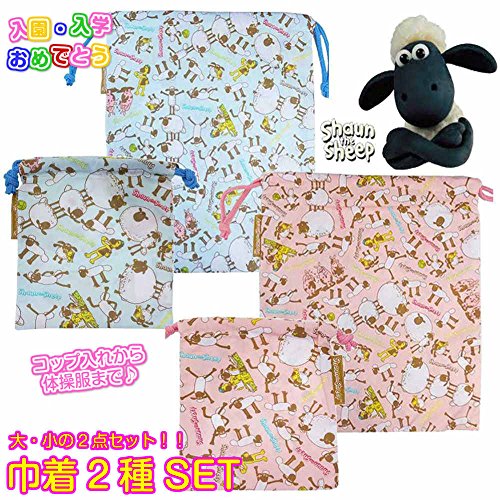 ひつじのショーン 巾着袋 2点セット コップ袋 エプロン袋 体操服 NHK fo-k-2376a サックス