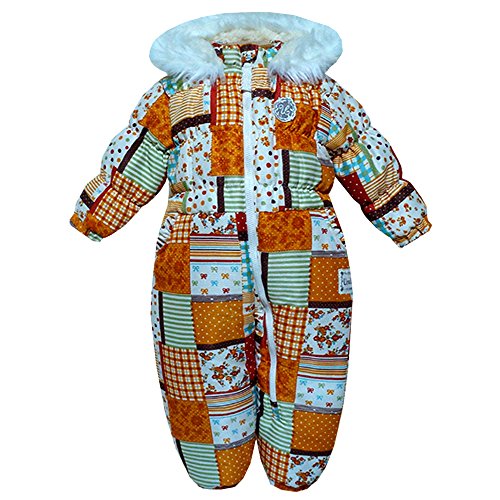 キッズ・ベビー スキーウエア ファーフード 中綿たっぷり ジャンプスーツ 女の子 女児 (オレンジ 90cm)