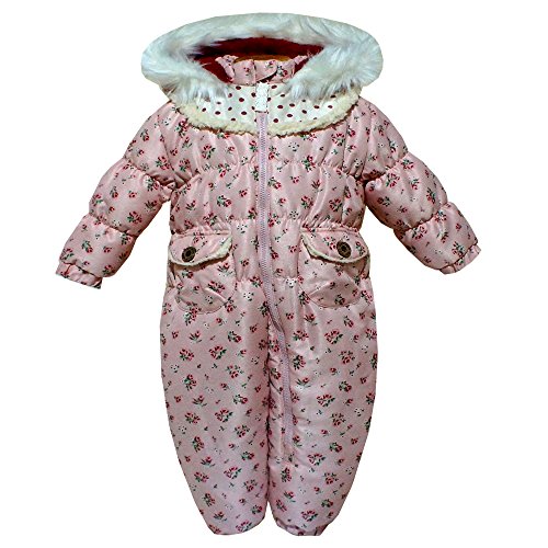 キッズ・ベビー スキーウエア ファーフード 中綿たっぷり ジャンプスーツ 女の子 女児 (ピンク 80cm)