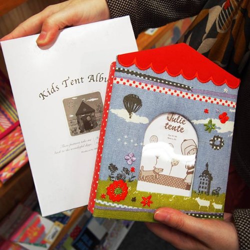 キッズテントとお揃いの柄を、刺繍やパッチワークを施してつくられたキッズテントアルバム。