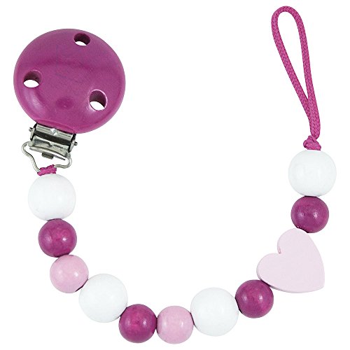 高品質のブナ材のビーズをつないだかわいいおしゃぶりホルダー。