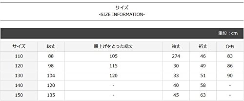 - 【セット内容】浴衣本体・帯 ▼110cm~130cmは肩上げ、腰上げ済みで、腰紐が縫い付けられております。 ▼肩上げ、腰上げはしつけ糸で簡単に縫製しております。しつけ糸を取っていただきますとサイズ調整が可能です。 ▼裁断や使用生地の性質上、製品ひとつひとつ柄の出かたが異なります。何卒ご了承下さいませ。 ▼Made in China