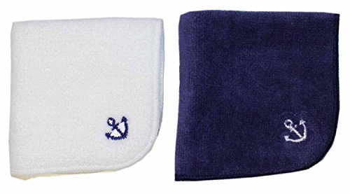 今治タオル×スマイリッシュ ミニタオルハンカチボーイズ2枚セット・名入れスペース付(白いかり&ネイビーいかり)