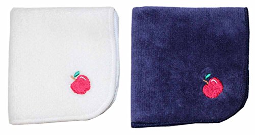 今治タオル×スマイリッシュ ミニタオルハンカチガールズ2枚セット.名入れスペース付(白リンゴ&ネイビーリンゴ)