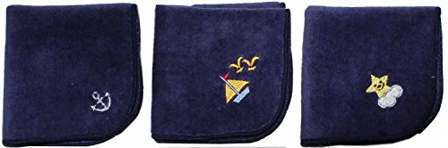 今治タオル×スマイリッシュ ネイビーミニタオルハンカチボーイズ3枚セット・名入れスペース付(いかり&ヨット&スマイリースター)