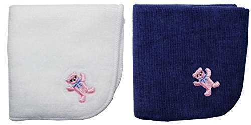 今治タオル×スマイリッシュ ミニタオルハンカチガールズ2枚セット・名入れスペース付(白×ピンクくま&ネイビー×ピンクくま)