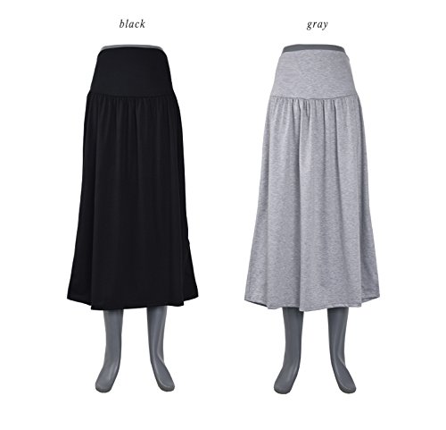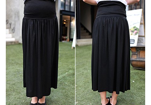 リブウエスト シルキーギャザー マタニティ ロングスカート (ブラック)【30000101073】