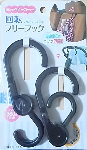 自由自在回転 フリー フック ブラック 2個入 ベビーカー ・ シルバーカー ・ スーツケース にも使える!