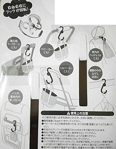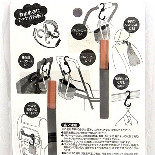 ■本品の小さいフックは直径2,3cmの太さまで取り付けられます!自由自在にフックが回転!ベビーカーにはもちろん、車内のヘッドレストや、部屋の中のなげし活用にも! ■商品サイズ 全長約幅5,4×長さ13×厚み2cm フック2個入 ■耐荷重量 3kgまで ■材質 本体/ABS樹脂 ネジ/鋼線