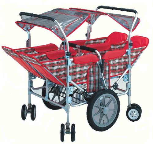 - 個別にリクライニング出来る、対面式4人乗りベビーカー。