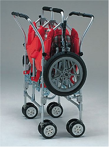 伝統の中央大車輪方式を採用し、押し心地も軽く、方向転換も楽々。前後左右対称の作りで、おさんぽの途中に進行方向が変えられる。4シート個別の2段階リクライニング機能付き。アルミパイプ採用で軽くて錆びない。