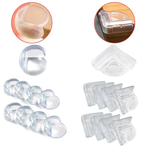 家具コーナーガード 【16個セット】 丸型8個+笑顔型8個 安全 無毒材質 赤ちゃん/子供/年配の方ケガ防止 ベビーガード 3M両面テープ付き 透明で柔らかい