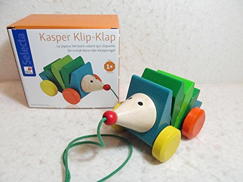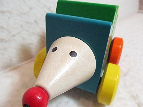 ひっぱるとお尻を上下させて動く引き車。 よちよち歩きの仲良しパートナーになりそう・・・ 背中部分をつかむとカチカチと音がなります。 サイズ 16×9×9cm メーカー セレクタ社(ドイツ) 材質 木製