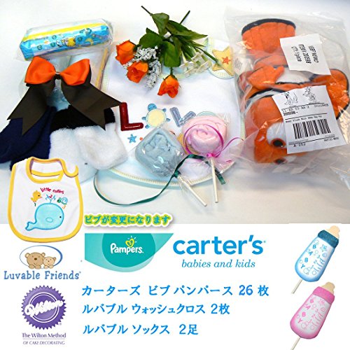 - ◆◆ 高さ約35cm・幅約 22cm テープタイプパンパース 26枚使用 ★ベビーソックス・ハンドタオルは色違いを使用する場合もございます。★