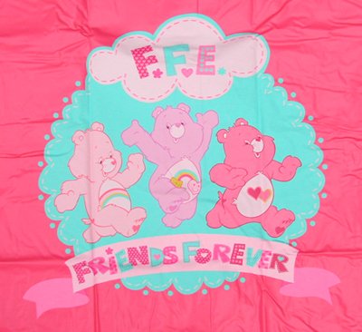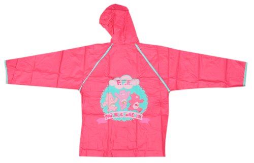 ケアベアの子供用レインコートです。ピンク色のレインコートにケアベアのイラストがプリントされています。背中にチアベア、ベストフレンドベア、ラブアロットベアのイラスト、胸にもハートがデザインされたロゴが入っています。サイズは約身幅49×着丈61×袖丈50cmワンサイズのみです。