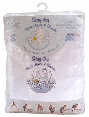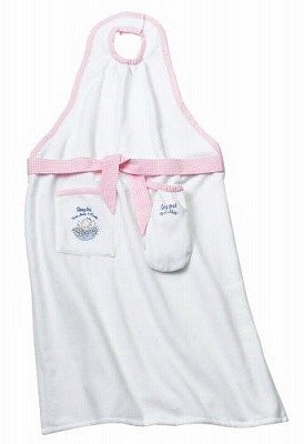 アメリカのベビー洋品ブランド、Hamco社製のバスエプロンです。ふわふわの柔らかいタオルでできています。赤ちゃんをお風呂で抱っこして、そのまま拭いてあげることができる便利なアイテムです。付属のバスミトンも同様の柔らかいタオル地です。100%コットン女性用フリーサイズエプロン:ヨコ73×タテ127cmミトン:ヨコ14×タテ25.5cm首の後ろでマジックテープ留めになっています。お祝いにもどうぞ。