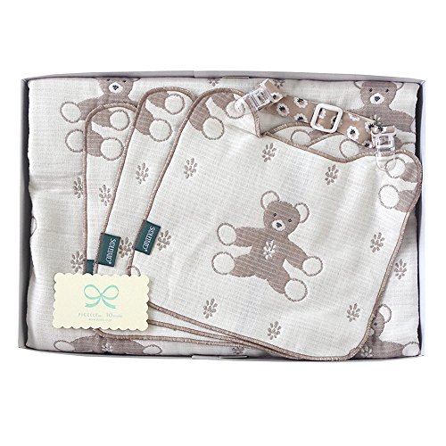 ソレイアード SOULEIADO 6重ガーゼケット+クリップ&ハンカチスタイ ギフトセット ブラウン 8875
