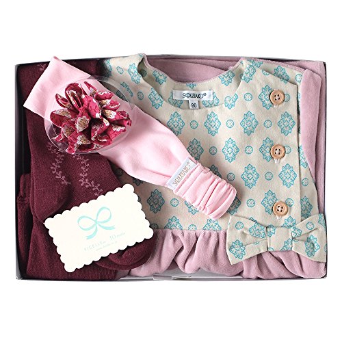 - リボンワンピースとタイツ、ヘアバンドをセットにしたベビーギフトです。