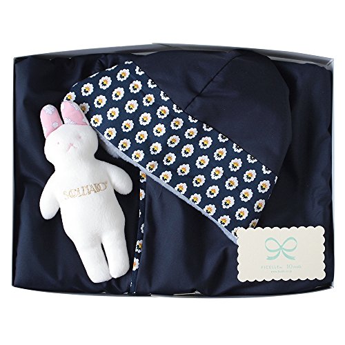 ソレイアード SOULEIADO ベビーマント+うさぎのがらがら ギフトセット ネイビー 8886