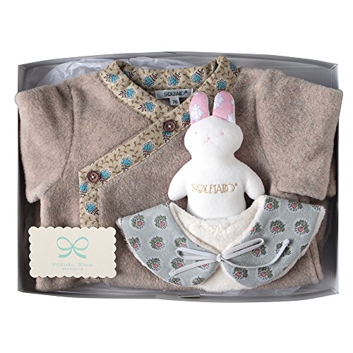ソレイアード SOULEIADO カバーオール+つけえりスタイ+うさぎのガラガラ ギフトセット ベージュ70cm 6323