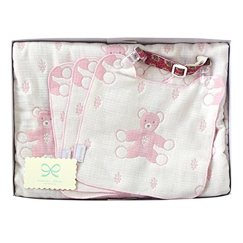 ソレイアード SOULEIADO 6重ガーゼケット+クリップ&ハンカチスタイ ギフトセット ピンク 8877