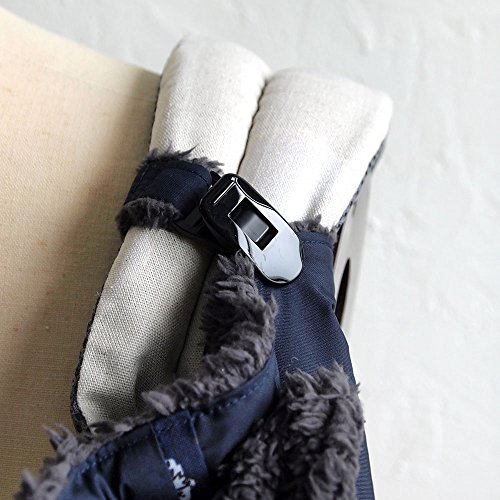 ・クリップが大き目で挟みやすく、巻き付けてクリップで本体を挟むので、ほとんどの抱っこ紐やベビーカーに対応。