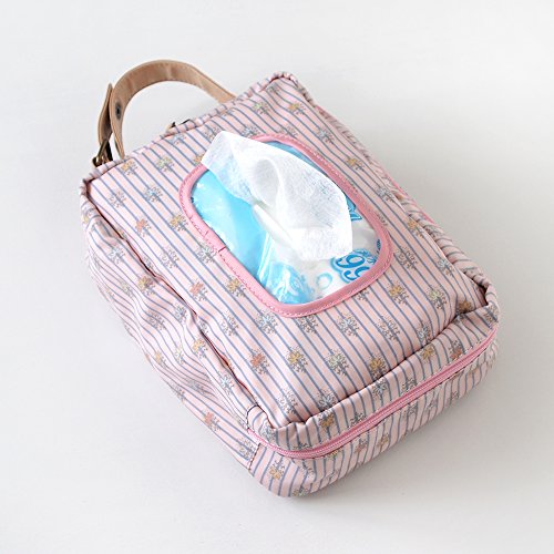 ベビーカーや車のヘッドに取り付けやすい持ち手になっており、 持ち手の長さは2段階で調節できます。バッグからすっと取り出しやすい縦型で市販のおしりふきをセットできます。