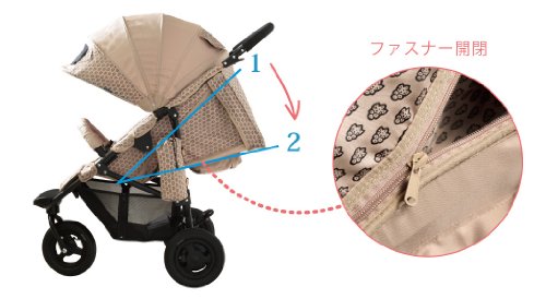 - 製品特長 :リクライニング角度115・135度、 ドームキャノピー
