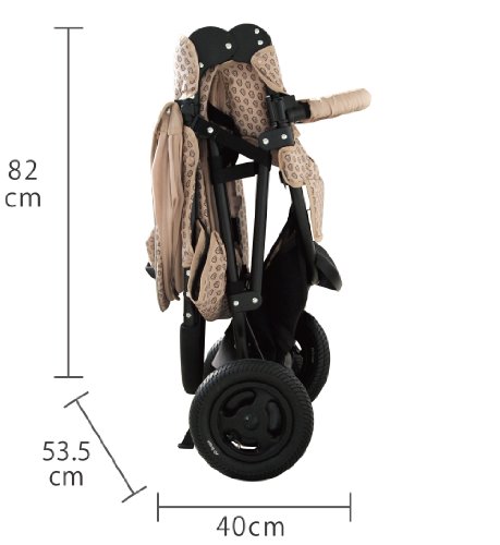 - [本体サイズ] サイズ:全長96cm×幅53.5cm×高さ104.5cm(ハンドル99cm)、折畳時:幅53.5cm×奥行き40cm×高さ82cm、タイヤ:各8インチ、重量:9.5kg