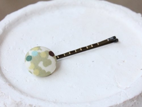 リバティ くるみボタンヘアピン (ドット 若草)
