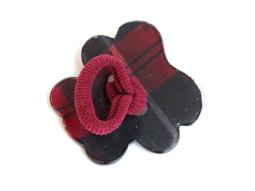 パーツがついたヘアゴムです。パーツはタータンチェックの