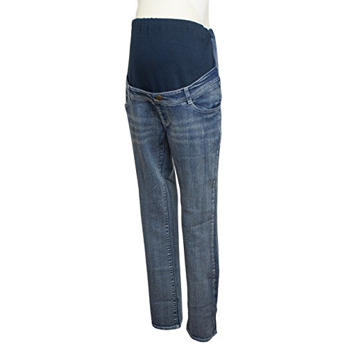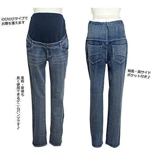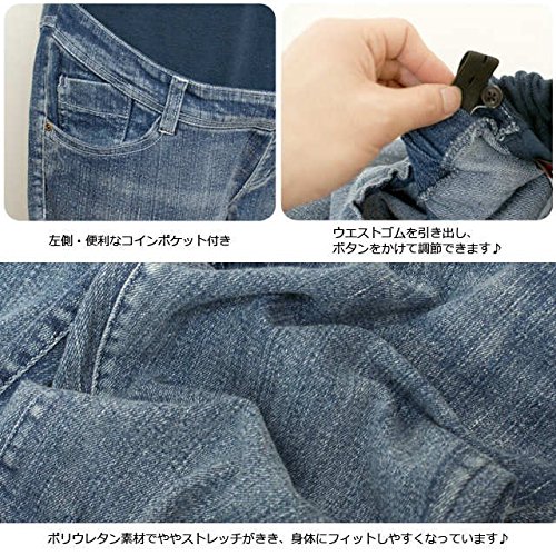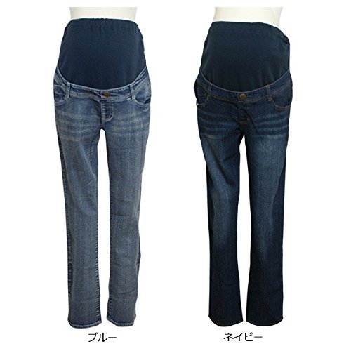 マタニティ デニム パンツ お腹周りリブ付き ストレッチデニム ストレート ジーンズ ブルー-M1657 L