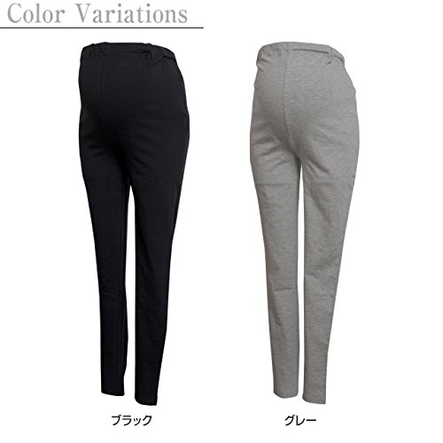 マタニティ レギンス パンツ 無地 10分丈 レギンス ウエスト調節ゴム付き ブラック-M7832 M