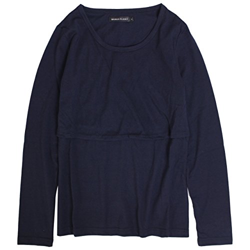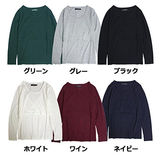 授乳服 長袖 Tシャツ 授乳口付き 無地 長袖Tシャツ 産後対応 マタニティウェア ネイビー-M7826 L