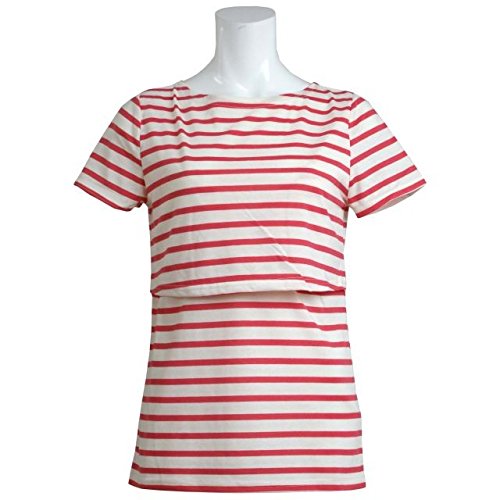 授乳服 半袖 Tシャツ 授乳口付 ボーダー柄 Tシャツ 産後対応 母乳育児用 オレンジ-M2799 M