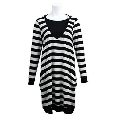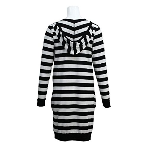 授乳服 マタニティ ワンピース 授乳口付 ボーダー 長袖 パーカーワンピース ホワイト-M7769 M