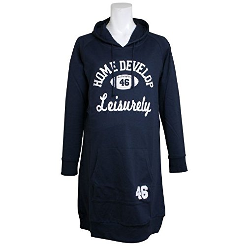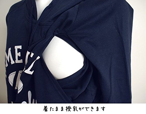 授乳服 マタニティ パーカーワンピース スウェット 授乳口付 長袖 チュニック ネイビー-M7804 M