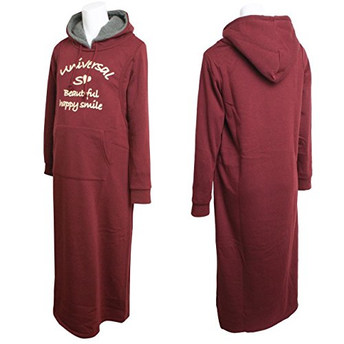 授乳服 マタニティ ワンピース スウェット 裏起毛 長袖 パーカーマキシワンピース ボルドー-M8577 M